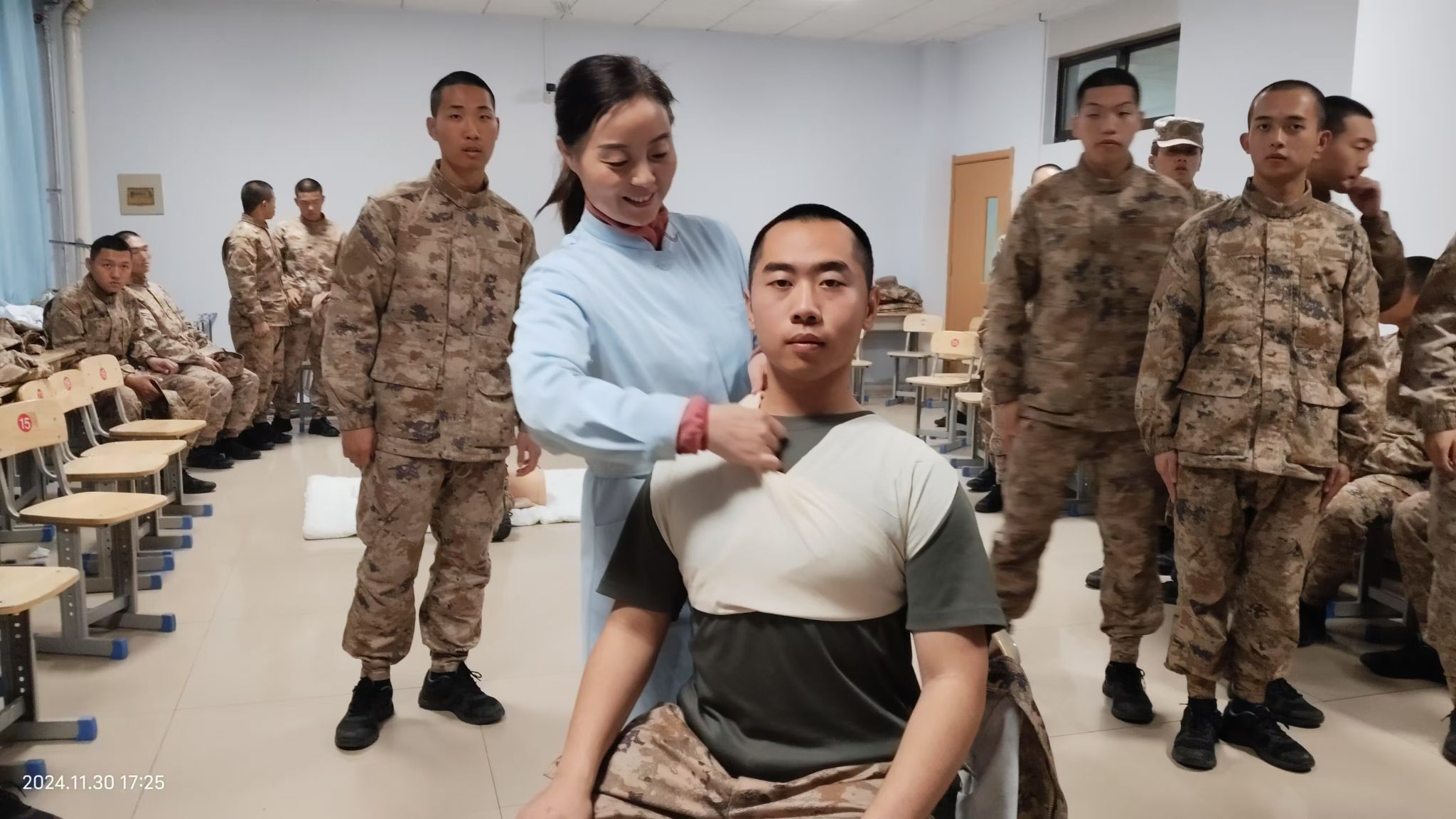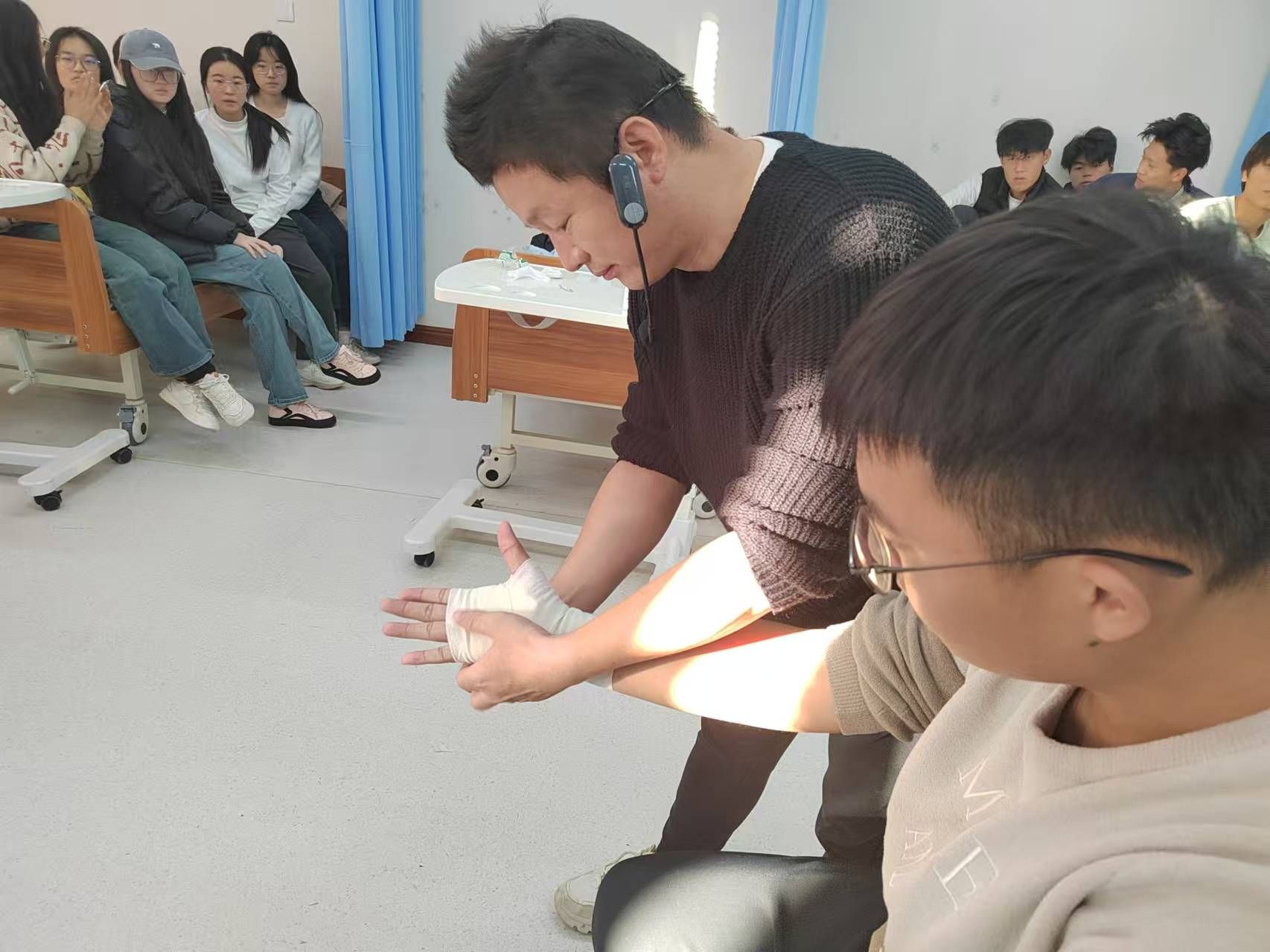 本学期《应急救护》课程按照2024级专业人才培养方案要求,利用周六、周日集中上课,对2024级新生应急救护理论知识进行普及和技能训练。课程共分为理论讲解和实践练习两个部分,通过理论与实践相结合,使广老员工掌握心肺复苏、创伤救护等基本救护操作技能及基本原理,旨在提高公司在校老员工防灾避险意识和自救互救技能,不断提升公司师生应急救护能力。