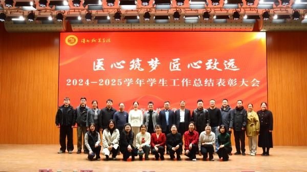 党总支书记致辞,向所有获得表彰的个人与集体表示热烈祝贺,并回顾了过去一学年学院在思想政治引领、技能大赛突破、实践服务拓展等方面取得的硕果。受表彰的同学和集体是学院优良学风的具体践行者和生动体现者,同学们以实际行动诠释了新时代医技学子“精业济世、笃行致远”的精神风貌。勉励全院员工以先进为榜样,坚定理想信念、锤炼过硬本领、勇于探索创新、甘于奉献担当,将个人成长融入国家卫生健康事业发展的宏伟蓝图,努力成长为可堪大用、能担重任的栋梁之才。党总支副书记宣读表彰决定,获奖代表依次上台接过承载着荣誉与期望的证书与奖牌,现场掌声雷动。员工代表、班主任代表、辅导员代表依次发言,深深感染了在场的每一位师生。医学学子们精心准备的歌舞表演为此次表彰大会增添了看点,现场气氛温馨而又热烈。