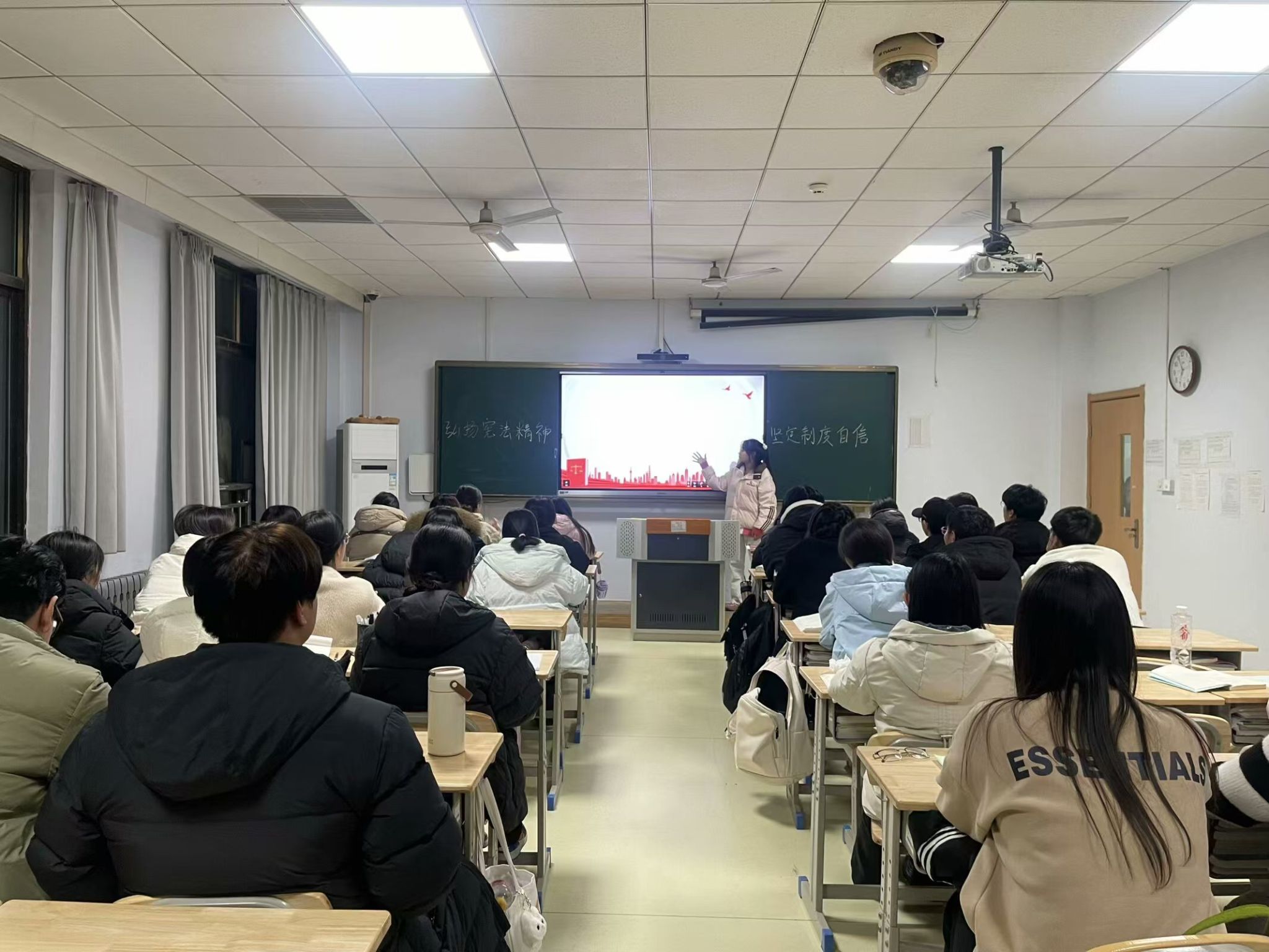 各班辅导员老师以主题班会的形式,从宪法的概念、宪法的性质以及宪法实施的意义等方面对宪法知识进行详细地介绍和讲解,以加强同学们对宪法的认识。班会中强调了宪法具有最高的法律效力,是普通法律立法的最高原则,普通法律不得和宪法相抵触,让员工切实感受到了宪法的重要性。班会过程中组织“宪法知识问答”活动,通过提问和抢答的方式,检验员工对宪法知识的掌握情况,进而提高同学们的宪法知识水平。